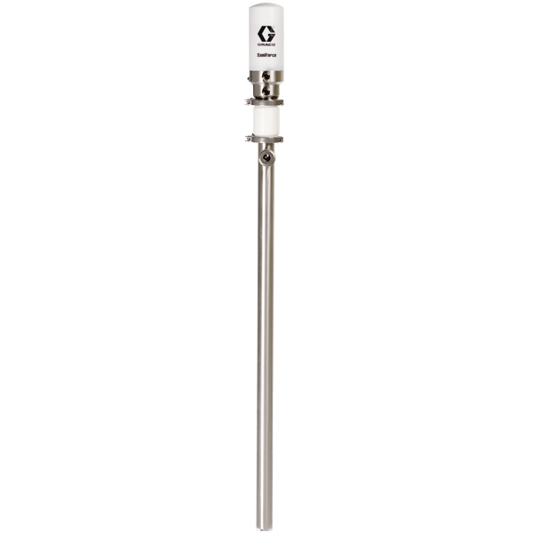 La bomba sanitaria SaniForce™ 2:1 de Graco está diseñada para transferir fácilmente alimentos, bebidas y productos de cuidado personal de baja a media viscosidad (hasta 50,000 cps) desde tambores o contenedores estándar.